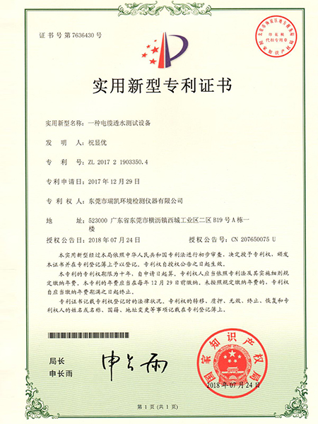 水蜜桃隐私视频网站仪器-一种电缆透水测试设备证书